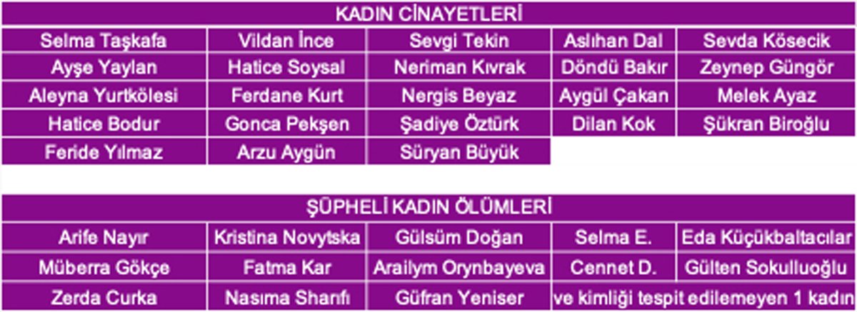 Kadin Cinayetlerini Durduracagiz Platformu Mart 2021 Raporu from kadincinayetlerinidurduracagiz.net Her koldan mücadele edilirse,kadın cinayetleri önlenebilir‼️ #kadıncinayetlerinedurde! Bu ay 23 kadın cinayeti işlenmiş, 14 kadın şüpheli bir şekilde ölü bulunmuştur. Kadın cinayetlerini durduracağız platformu i̇letişim: Ülkemizde işlenen kadın cinayetleri ile ilgili meclis kürsüsünde söz alan chp hatay milletvekili suzan şahin, i̇stanbul sözleşmesi'nin iptal edilme kararı ile ilgili tepkilerini dile getirdi. Anıt sayaç' ta 2021'in ilk 65 gününde öldürülen kadınların isimleri yer aldı. Peki bu kadın cinayetleri ile tsk'nın ne ilgisi var? Toplam 3.922 kadın cinayeti haberi, videosu, fotoğrafı ve yazar yazısı yer almaktadır. Kadın cinayetleri türkiye'nin en büyük yaralarından birisi.